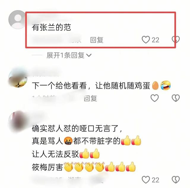 满屏幕都是夸赞,说马筱梅情商很高,怼到对方哑口无言。也有说“下一个给他看看,让他随机随鸡蛋”。