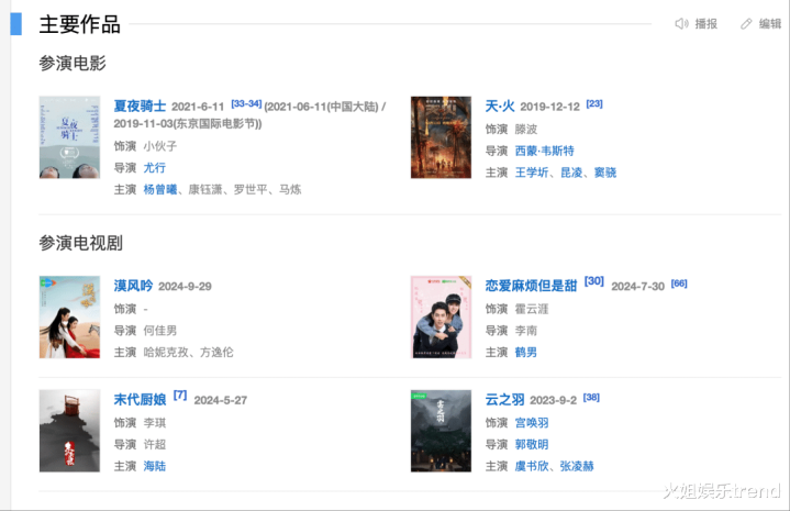 20年到现在出演了多部影视剧,几乎没有空档期,这在影视寒冬来说已经算是很不错的资源了。