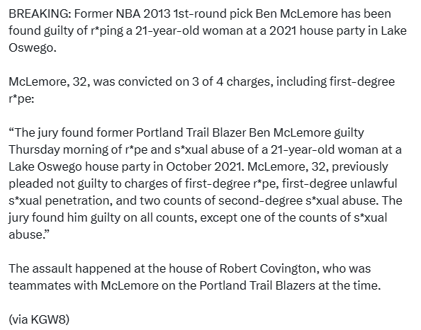 北京时间7月4日,据美媒《KGW新闻》报道,前NBA球员本-麦克勒摩因性侵案正式被判有罪,一级强奸罪和一级非法性侵罪名成立,面临8年监禁。