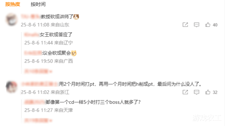 那么玩家们如何评价这次的削弱呢?评论区中大部分的人其实还是在阴阳怪气比如有人说将教授削弱成为讲师,还有人说议会砍成聚会类似的调侃,总结一句话就是玩家们觉得目前团本的难度过低,导致了玩家们不喜欢打本,但是看了下WCL的数据却让我有点怀疑评论区是不是精英玩家的集合地,如果真的那么多精英玩家雷火会削弱吗,WCL的通关率也不会才7%?