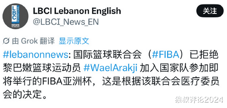 北京时间8月9日,根据黎巴嫩媒体的报道,国际篮联(FIBA)拒绝阿拉基加入黎巴嫩男篮,出战正在进行的男篮亚洲杯,这一决定是基于医疗委员会的结论做出的。