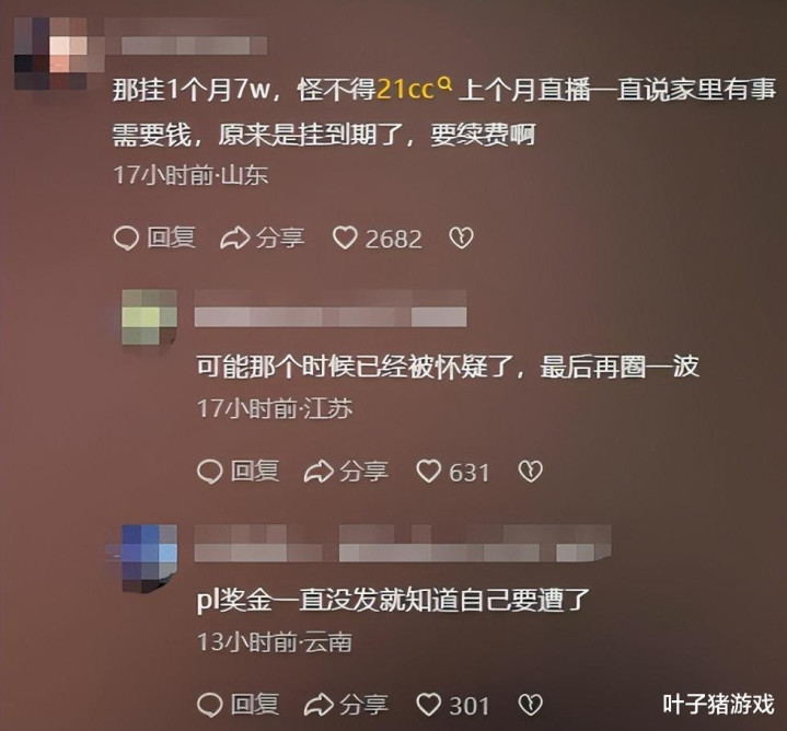 对此,网友都惊了:“那挂1个月7w,怪不得21cc上个月直播一直说家里有事需要钱,原来是挂到期了,要续费啊”,“想起之前kennys还夸nero厉害,想引荐他打职业什么的,真是唏嘘啊”,“这个21cc那个cce4,还讲过他的demo,我还认真学习了一段时间他的pov”……