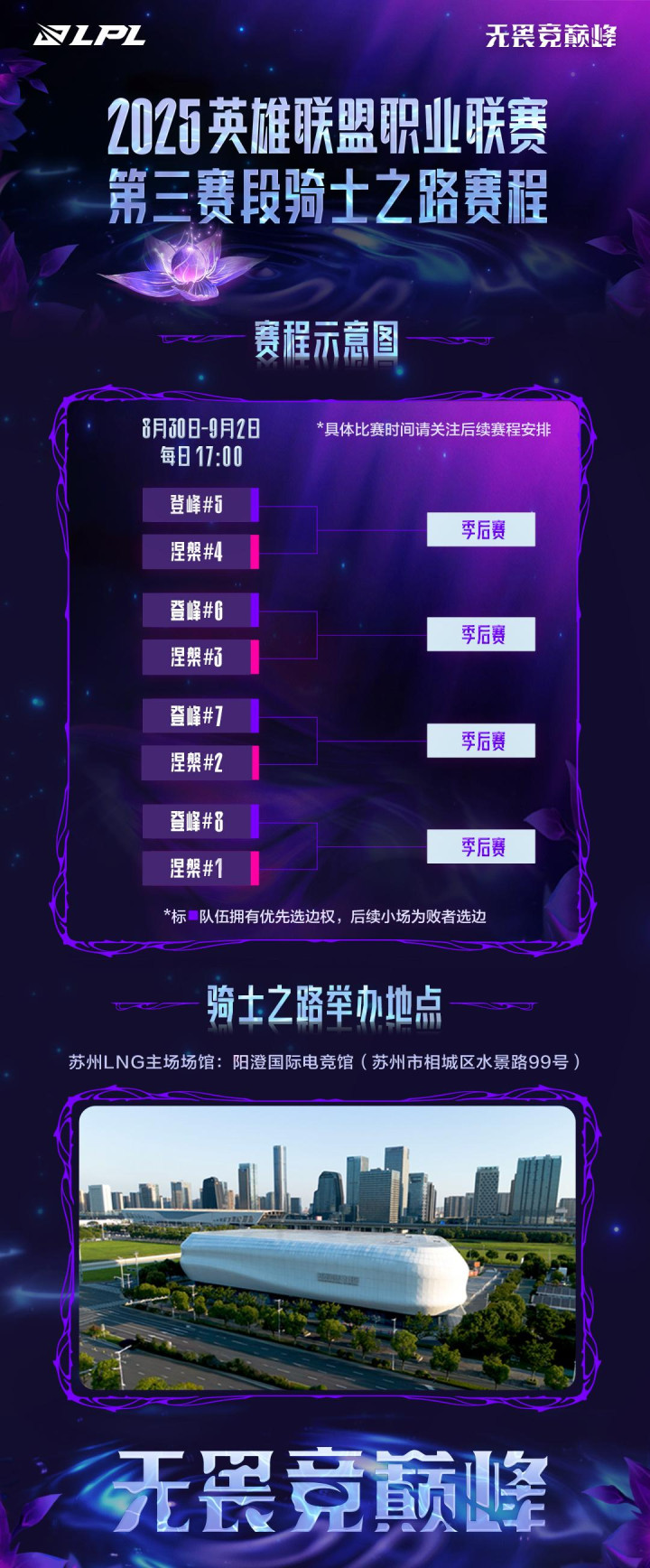 LPL第三赛段骑士之路将于8月30日-9月2日在苏州LNG主场举行