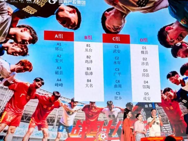 抽签仪式揭晓了本届赛事分组情况:A组为邯山区、复兴区、磁县、峰峰矿区,B组为丛台区、鸡泽县、临漳县、大名县,C组为武安市、永年区、广平县、曲周县、肥乡区,D组为魏县、涉县、邱县、馆陶县、成安县。