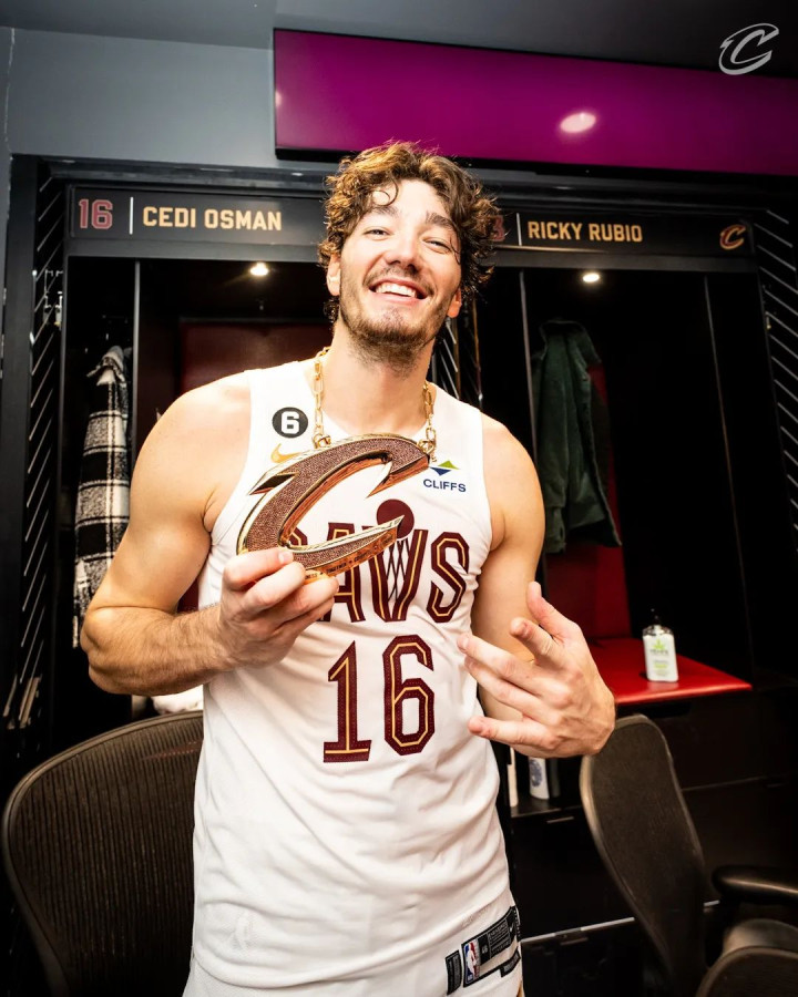 2022-23赛季,也就是奥斯曼在骑士的最后一年,他出战的77场比赛,有75场是替补,场均只能上场20.1分钟,得到8.7分2.3篮板1.5助攻。