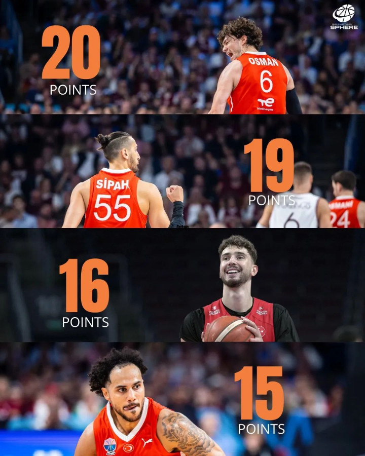 回到此次欧锦赛,土耳其男篮的实力绝对不差,他们不仅有申京、奥斯曼,还有科尔克马兹、尤尔特塞文等多位前NBA球员,其他几位主力拉金、斯帕西的表现也不俗。
