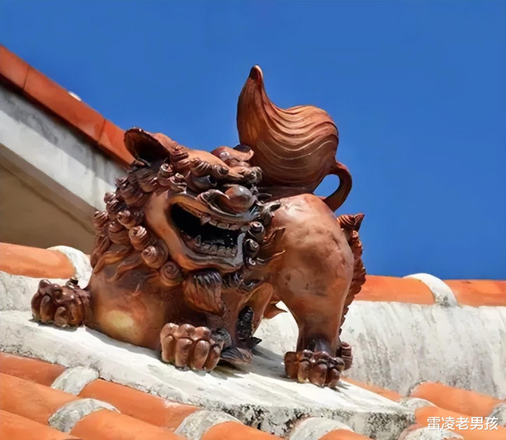 该神兽起源是我国神话中“龙生九子”的第五子狻猊,传说对其的描述是“形似狮子,平生喜静不喜动,好坐,喜欢烟火”,在我国福建省一带古来在村口模仿狻猊的形象雕刻“风狮爷”作镇风避灾之意,后来传到琉球群岛设置于屋顶及村口作为镇宅。