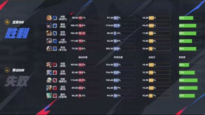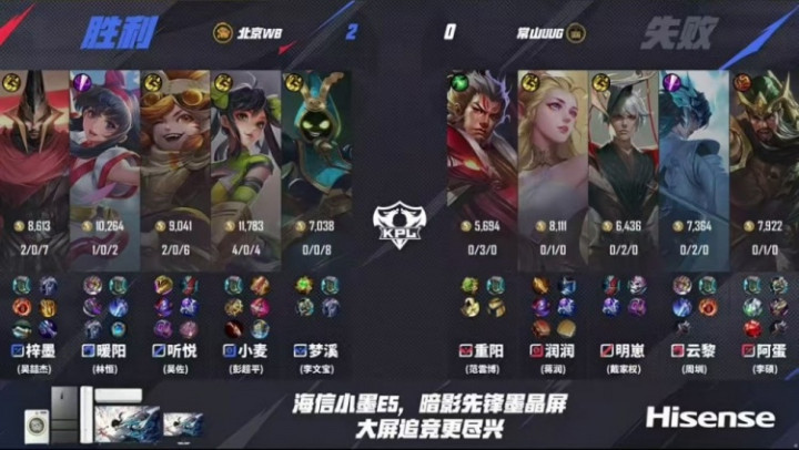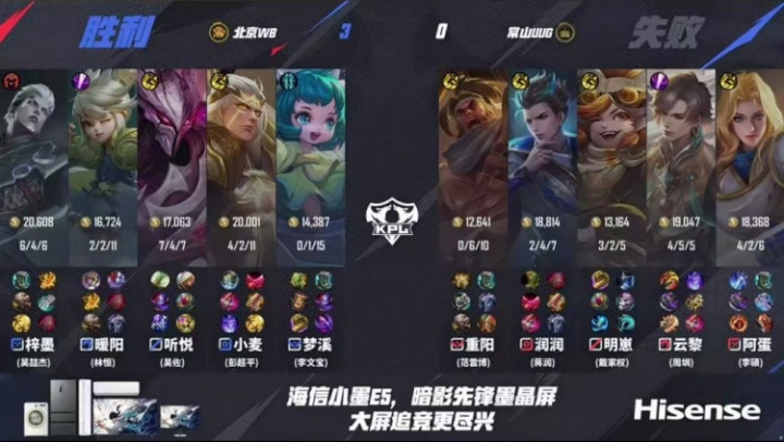 直播吧7月20日讯2025KPL夏季赛卡位赛今日压轴之战是由北京WB对阵到常山UUG!第一局:双方前期互相拉扯,难分胜负,21分钟WB抓到机会先秒射手抓到机会拿下首局!第二局:UUG前期想要控资源打出节奏被WB反制,但是蒙恬中期直接帮助WB打出强度,WB控下资源拿下第二局!第三局:双方前期难分胜负,后期双方围绕龙王不停打团,27分钟UUG拿下龙王但是被WB打赢团战WB先拿赛点!第四局:WB前期就通过辅助打开节奏,中期杨戬接管团战WB碾压UUG拿下胜利!