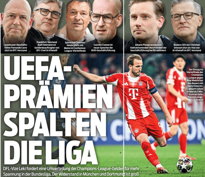 DFL提出欧冠球队少分奖金: 药厂法鹰赞同, 多特拜仁红牛反对