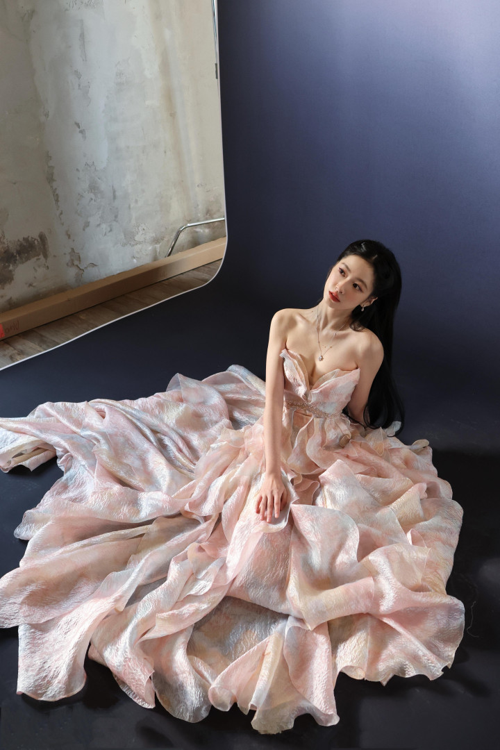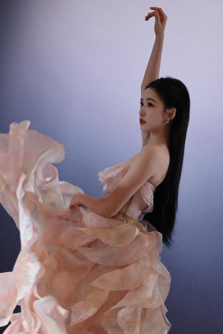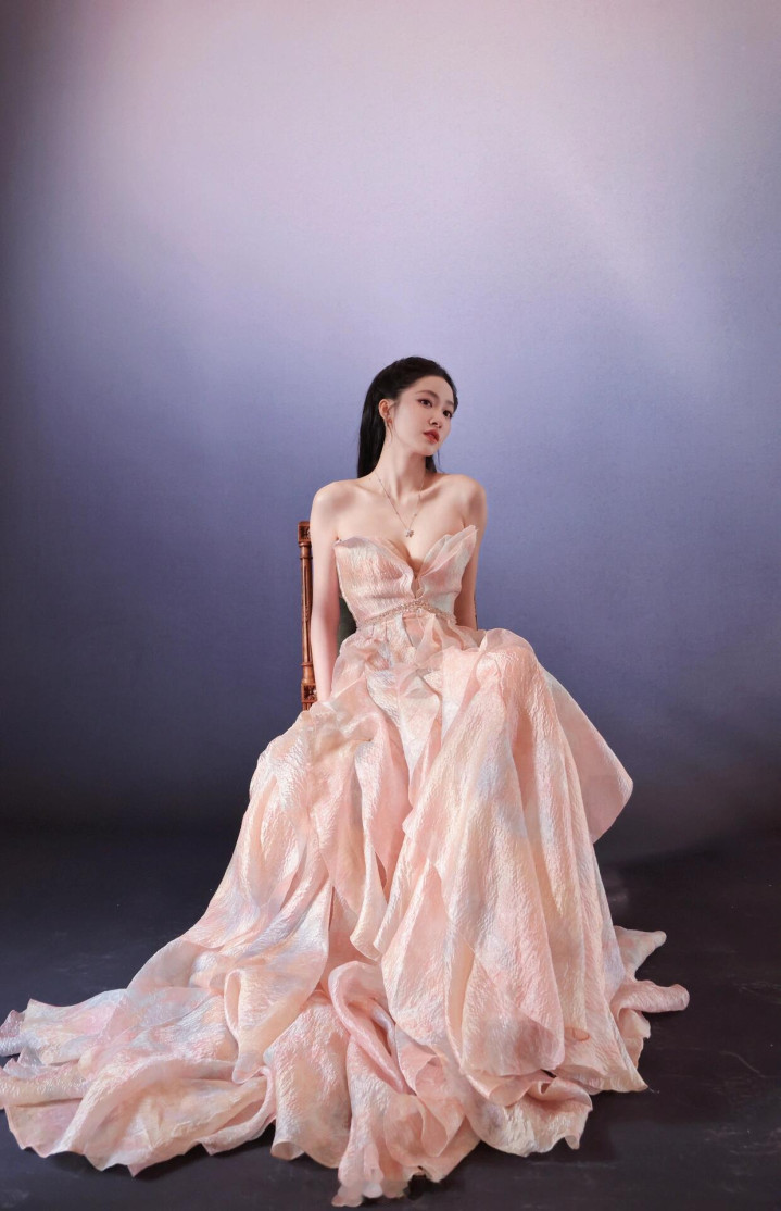 杨肸子抹胸粉裙凸显饱满身材,甜美穿搭解锁红毯清新范儿