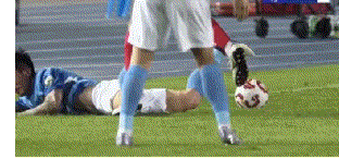 上半场补时阶段,姜至鹏被奥莫伊胡安弗踩到脚踝,但是裁判没有任何表示,这引发争议。慢镜头显示奥莫伊胡安弗踩踏动作明显。这种动作不管有意无意,理应吃牌,毕竟是危险动作。