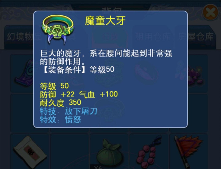 上面是一条50级的腰带,上面的这条50级的腰带拥有着愤怒和放下屠刀两个蓝字效果,这条50级的腰带是在一个刚刚开服没有多久的新区中被玩家在场景中获得的。在新区前期的时候低等级PK频发,所以上面的这种能够在PK中用到的装备的价格就比较贵,如果上面这种玩家所在的服务器开服的时间不是很长,像这种50级的装备也能够卖到2000多,但是此类物品的价格会随着服务器开启时间的变长而降低。