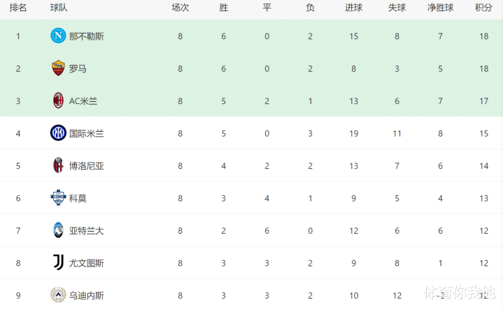 本场过后,尤文在意甲已经连续5轮不胜,排名跌到第8位。赛季初,尤文一度是意甲表现最好的球队之一,前3轮过后,他们全取9分并列榜首,特别是在主场4-3击败国米之后,尤文被不少人视为夺冠热门。没想到的是,之后5场比赛,尤文3平2负未尝胜绩,他们在争冠大战中已经开始掉队。截至目前,尤文已经落后榜首的那不勒斯6分,如果不尽快找回状态,相信尤文的排名还会继续下滑,到时候他们连争四都会出现问题。