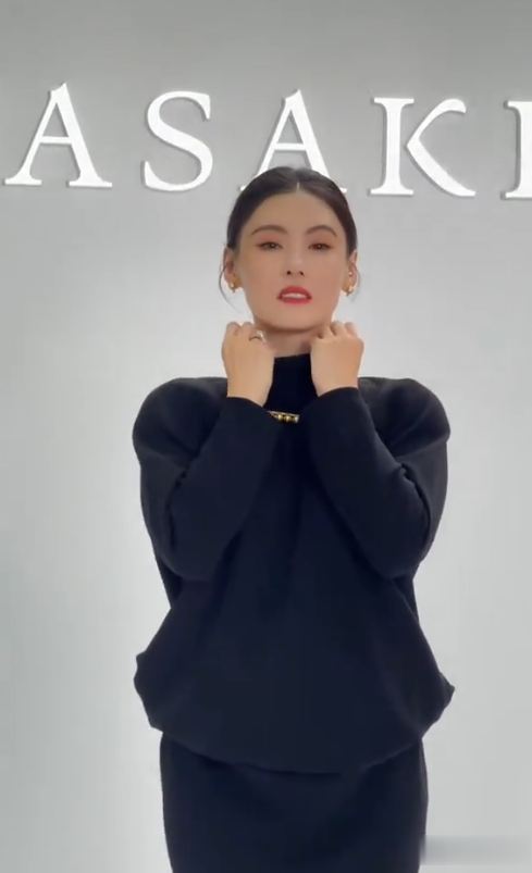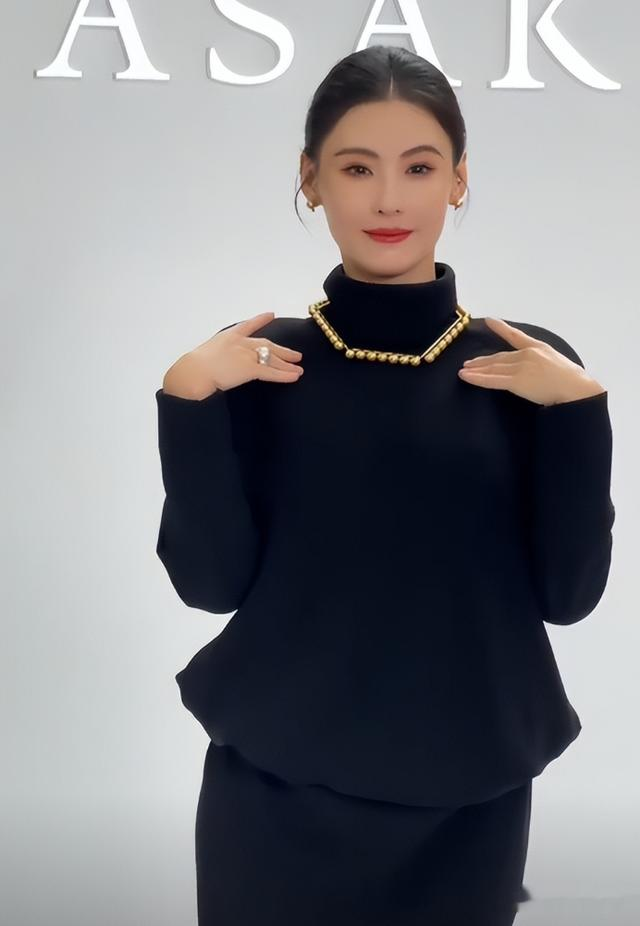高龄的黑色长袖,手指上和脖子上戴着珠宝,简直就是将一位贵妇人诠释得淋漓尽致,而且,最重要的还是张柏芝的脸。