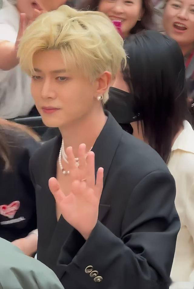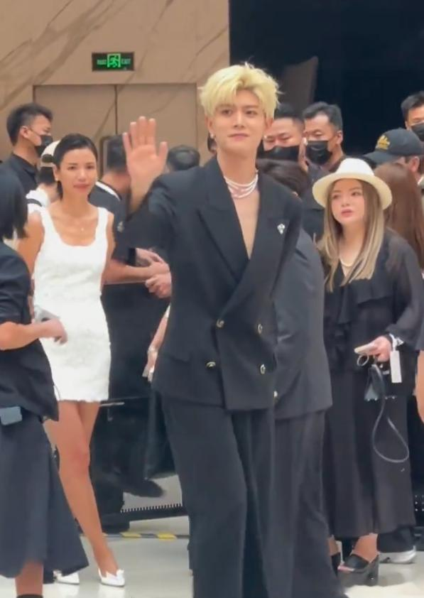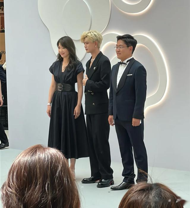 因为品牌方是卖珠宝的,所以现场嘉宾穿的都珠光宝气的,而且任嘉伦作为TASAKI的代言人,内场到处插得都是他的大头照,这排面拉满了。
