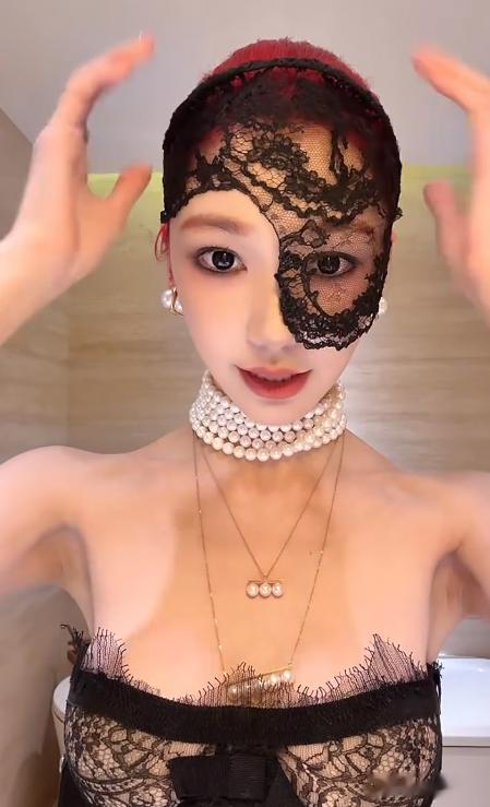 近距离看她的衣服,上半身是抹胸,但是这个抹胸是蕾丝做的,四周都还有毛边,看着破破烂烂的十分廉价。