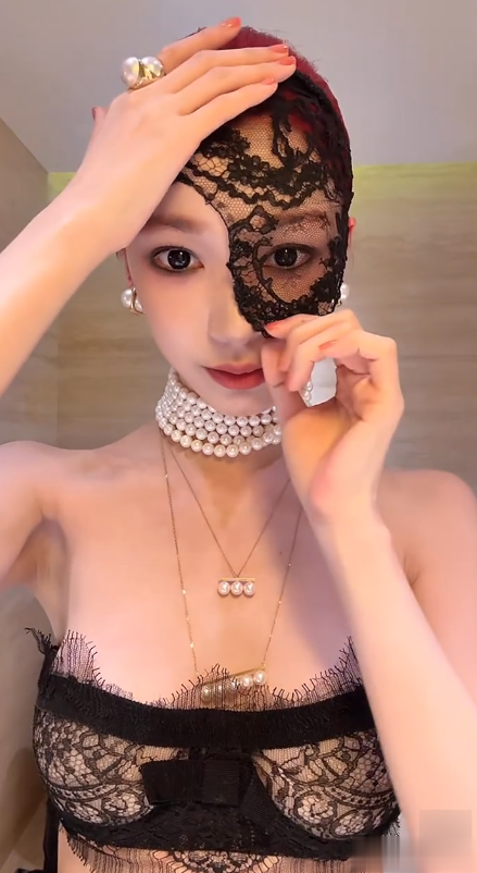 为了给珠宝做宣传,所以她的脖子上戴着一圈又一圈的项链,但是看着仍旧廉价,完全都凸显不出珠宝的富贵。