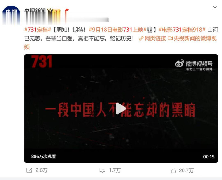 直到8月3日,央媒亲自下场,宣布《731》定档9月18日,一切才成定局。