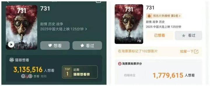可惜,一时之间反对之声却越来越响,甚至近百万人抵制《731》上映。