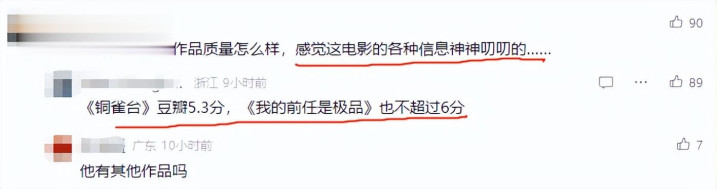 还有人说,导演曾经的两部作品,《铜雀台》豆瓣5.3分,《我的前任是极品》也不超过6分,这个电影怕是很难及格……