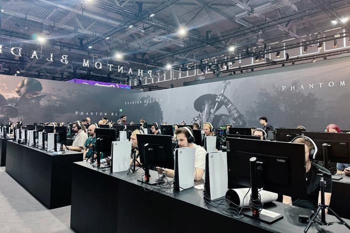 再次来到科隆的灵游坊《影之刃零》,首次向海外玩家提供时长一小时的试玩版本,展会现场设有500平方米的试玩区域,配备60台试玩设备,面积达到去年的5倍。8月20日仅限媒体和专业观众入场,排队试玩仍然要两小时以上。现场工作人员表示,去年该游戏DEMO在科隆展示反响非常好,很多媒体主播说,这是他们在整个科隆展中玩过最好的游戏,在今年7月国内组织的150台机器线下试玩活动中,同样获得积极反馈,这也让他们有信心在科隆设下大规模展位,且现场没有布置任何展台秀和cosplay,以纯试玩形式向全球玩家提供体验。