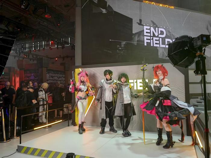 鹰角网络《明日方舟:终末地》展台成为全场的焦点之一,展台将游戏中的元素巧妙融入其中,步入其中,仿佛踏入了游戏中危机四伏却又充满希望的塔卫二世界。周围环境的布置,从荒芜壮阔的异星地貌到充满未来感的工业设施,都高度还原了游戏内的场景,让玩家瞬间沉浸在《明日方舟:终末地》独特的世界观里。巨大的屏幕上循环播放着游戏的宣传影片,展示着流畅的人物动作、酷炫的战斗特效,引得过往玩家纷纷驻足观看。