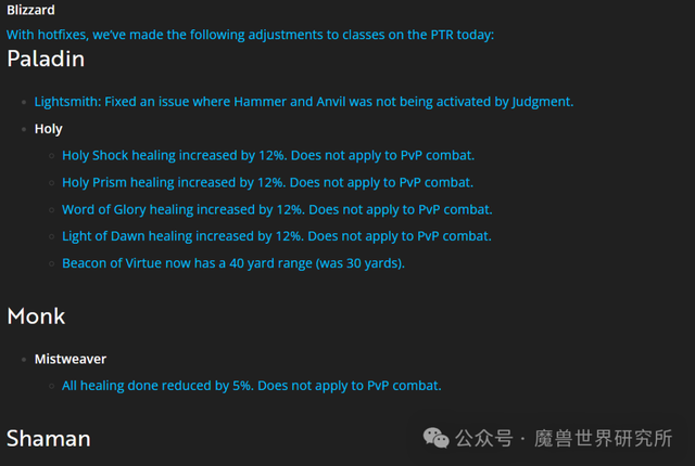 暴雪发布了7月19日PTR测试服的职业调整,这次主要针对的是奶妈